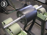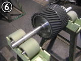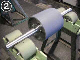 A.ゴム(加硫済ゴム)と被接着体(金属)を専用接着剤にて接着することです。現地施工やベアリングやモーター付きなど加硫缶に入れることのできないプーリーはこちらで行います。