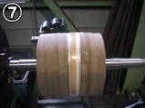 F帯で締めつけて加硫缶に入れます。